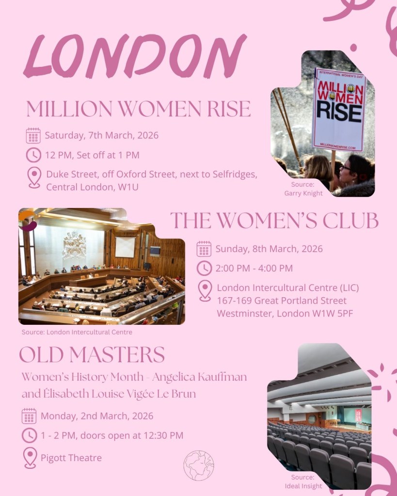 On International Women’s Day itself, the London Intercultural Centre hosts a community-oriented gathering focused on women’s empowerment and cross-cultural dialogue.